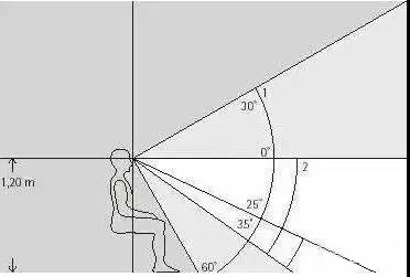 图:人眼正常的注意视线范围是平视上方30°到下方60°,在这个范围内出现刺眼的光线,就是眩光。