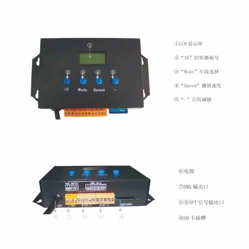 >> 外置按键和LCD显示及时调整控制器参数,如节目片段、播放速度;