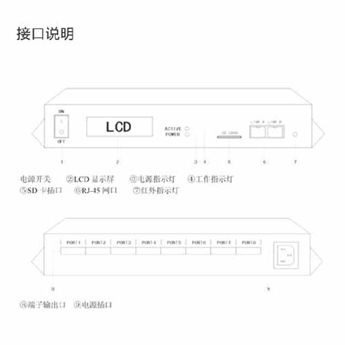 >> 控制器配有SD卡存储,外配遥控器,可实现脱机定时播放、播放片段选择、整体亮度调整、白平衡调整、播放速度调整;