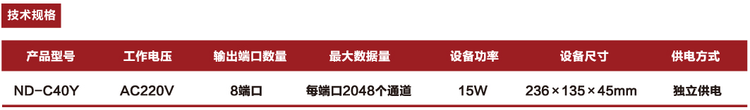 >> ND-C40Y为联机脱机一体控制器,8端口输出,每口最大带载为170点,单台控制,不可级联;