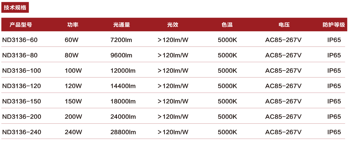 >> 灯具光效高达120lm/W;