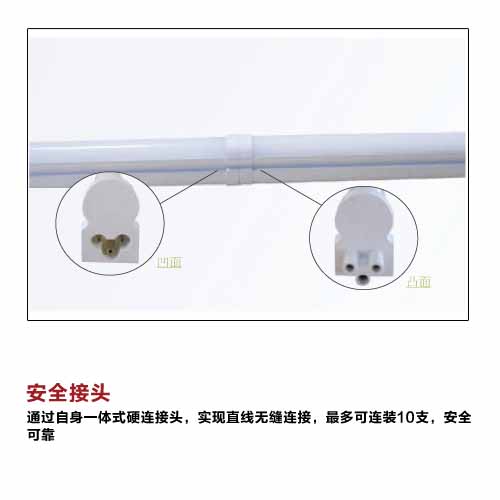 >> 采用高品质光源,光效高,节能效果显著 ; >> 一体化公母头连接,使用安全,连接方便 ; >> 光学级玻璃灯管,透光率高达93%,不黄化; >> 内层纳米级涂粉,超导电化喷涂技术,吸附力强,杜绝荧光粉脱落; >> 灯体采用优质钢板折弯成型工艺,简洁轻便,机械强度高